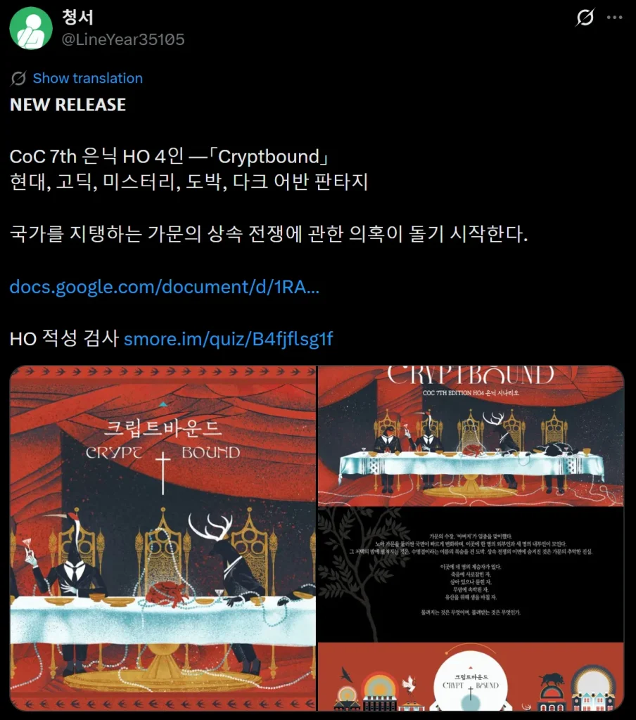 本作は、「 株式会社アークライト 」及び「株式会社KADOKAWA」が権利を有する『クトゥルフ神話TRPG』の二次創作物です。