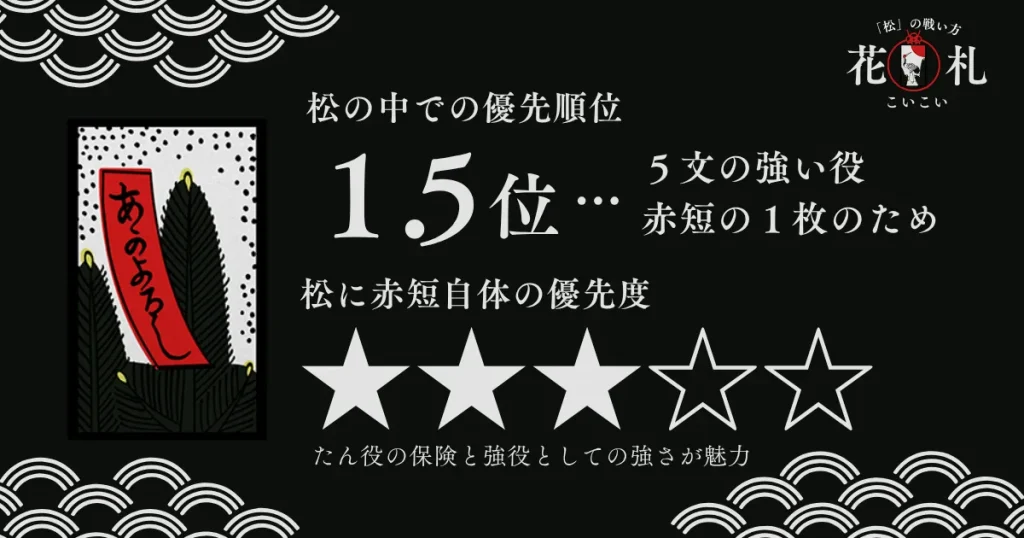 大きい役だけを見るより、手堅く読みの幅を残したい時は、松の赤短を先に押さえる意味があります。