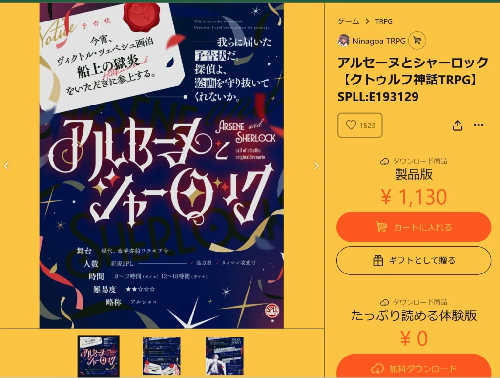本作は、「 株式会社アークライト 」及び「株式会社KADOKAWA」が権利を有する『クトゥルフ神話TRPG』の二次創作物です。Call of Cthulhu is copyright ©1981, 2015, 2019 by Chaosium Inc. ;all rights reserved. Arranged by Arclight Inc. Call of Cthulhu is a registered trademark of Chaosium Inc. PUBLISHED BY KADOKAWA CORPORATION 「クトゥルフ神話TRPG」