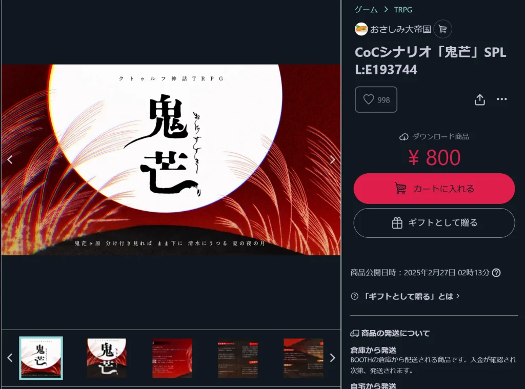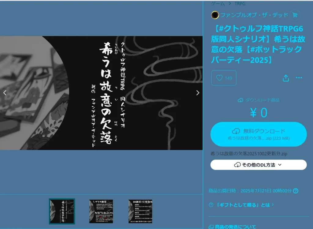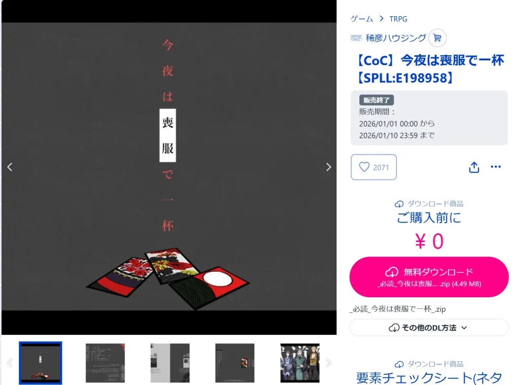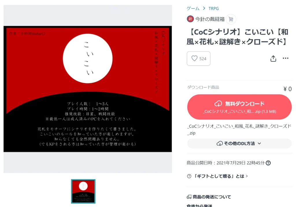 https://www.pixiv.net/novel/show.php?id=15368377・BOOTH版では本文に加え、オリジナル花札やNPC画像、共有メモテキストなど、セッションに必要な細々したものをまとめてセットにしています。