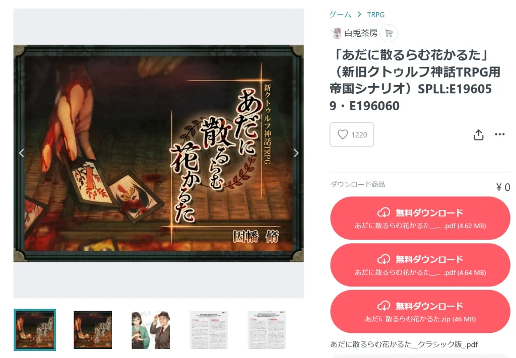 「あだに散るらむ花かるた」(新旧クトゥルフ神話TRPG用帝国シナリオ)SPLL:E196059・E196060