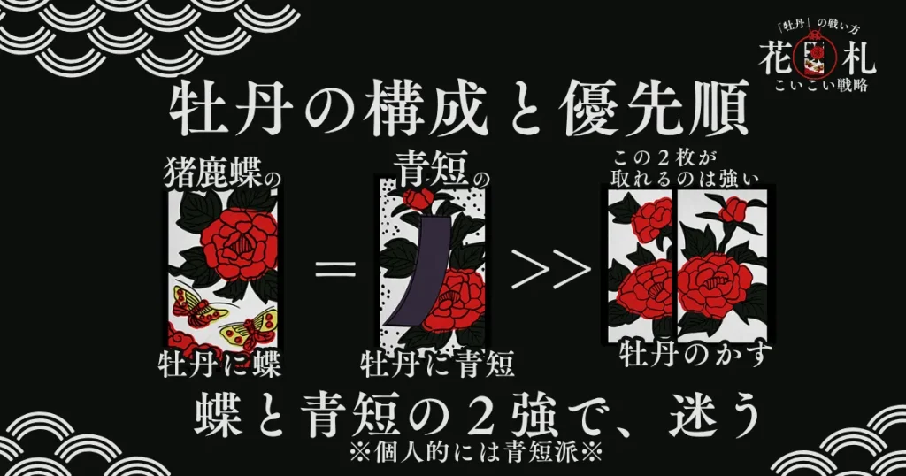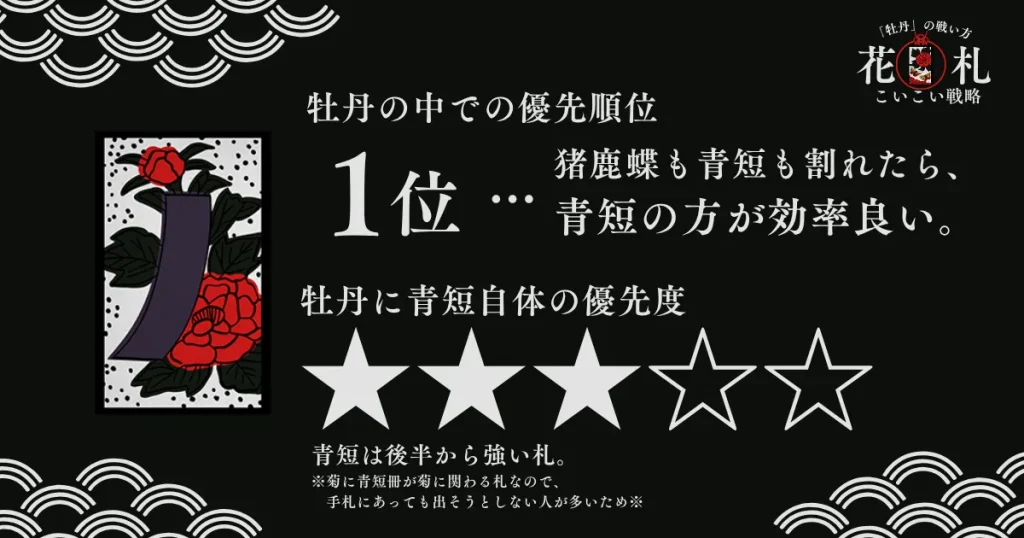 牡丹の青短を先に押さえる意味があります。