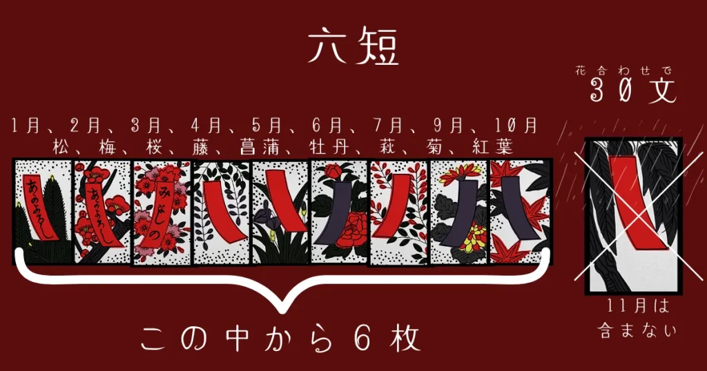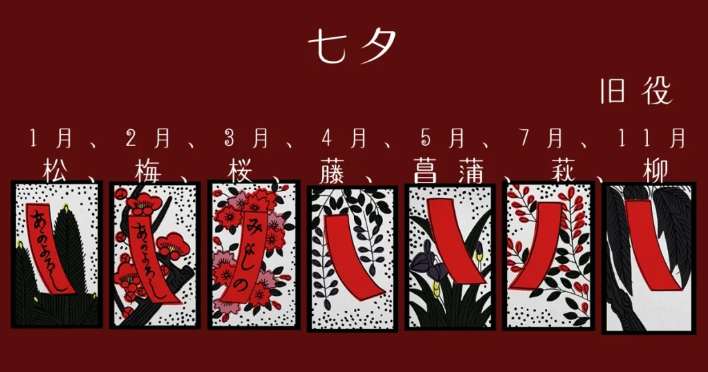 「赤短」の役は未成立で、十枚の「短冊札」の内で「紫短」の三枚をのぞいた残りの七枚の赤色の短冊札をすべて集めた「七夕」の役であること、