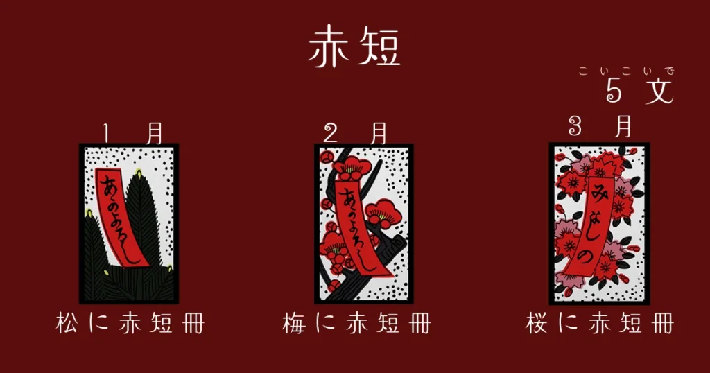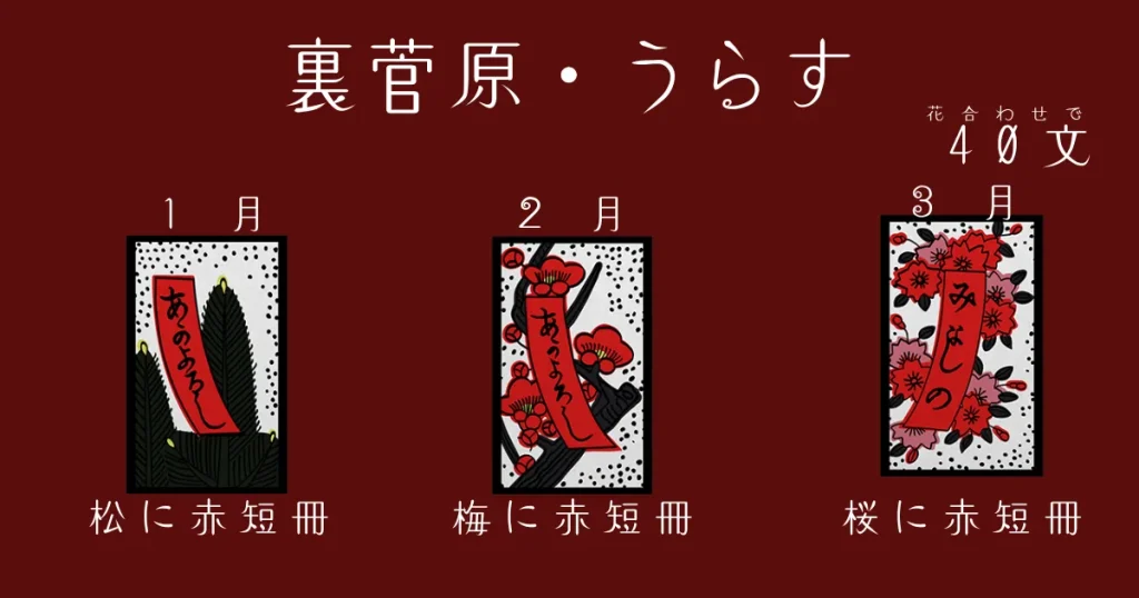 「松に赤短冊」「梅に赤短冊」「桜に赤短冊」
