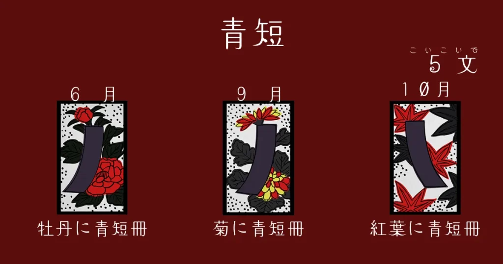 「牡丹に青短冊」「菊に青短冊」「紅葉に青短冊」