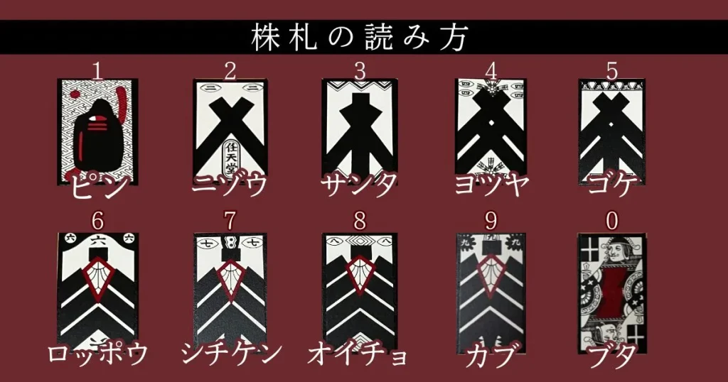 6(ロッポウ)、7(シチケン)、8(オイチョ)、9(カブ)、0(ブタ)