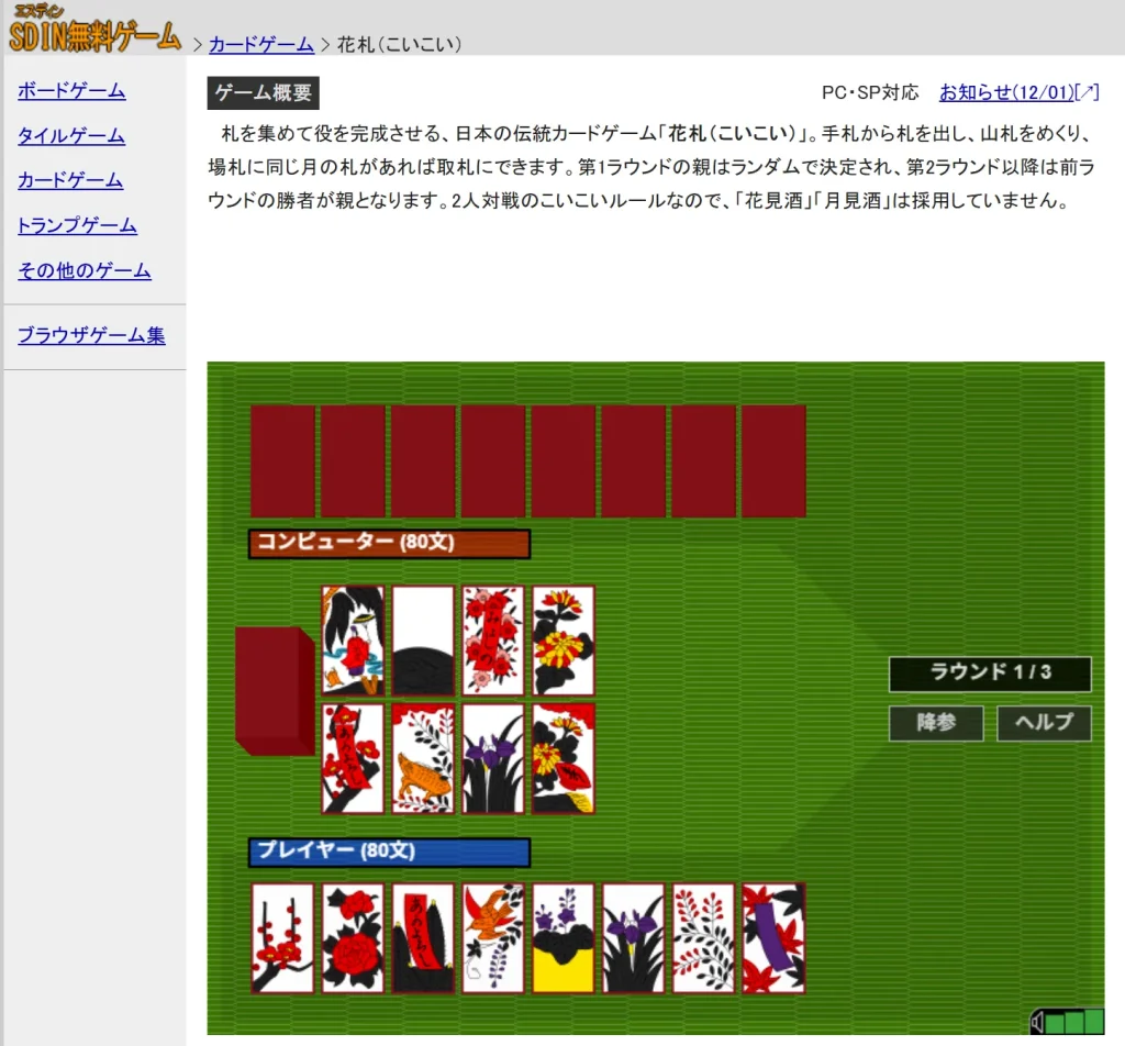 インストール不要で、ブラウザだけですぐ遊べる花札こいこいの無料ゲームをまとめました。