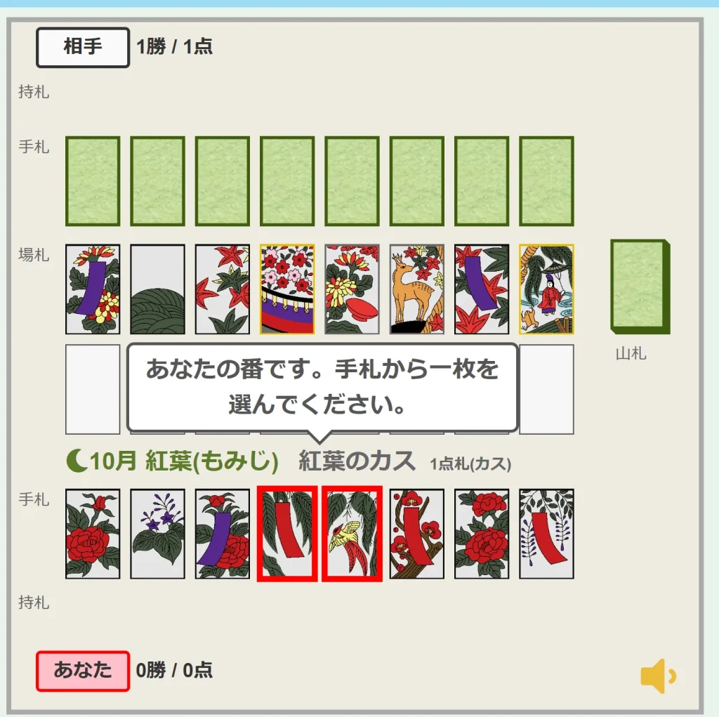 ・ガイド…手札をクリックすると、合わせる札が分かる。