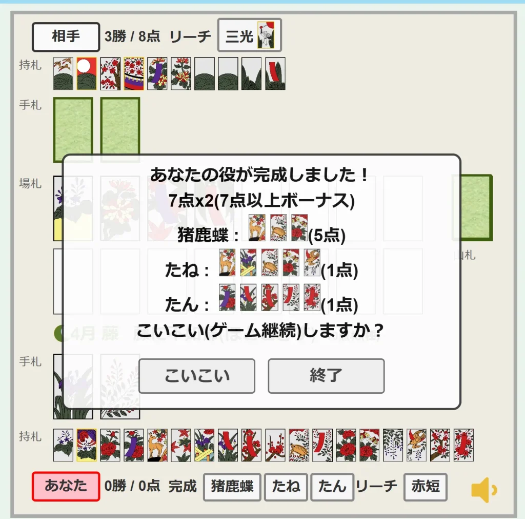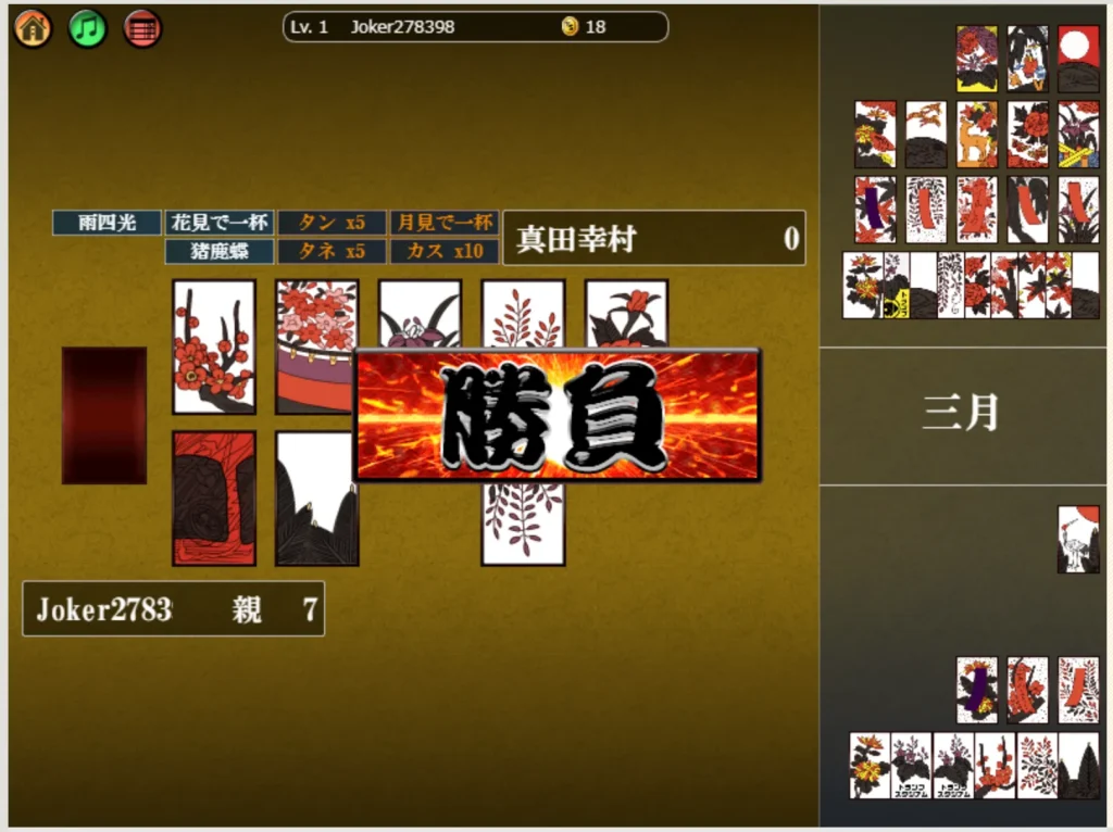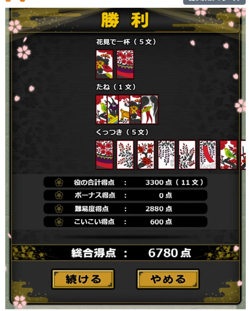 持ち点制!珍しい花見月見ルールなし固定のこいこい