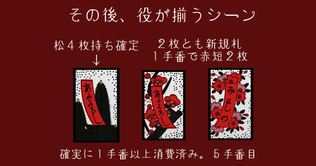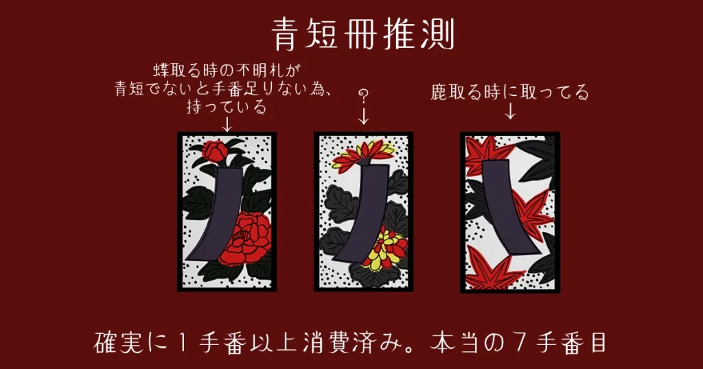 6手番の「めくり」で「菊の青短冊」取っていることにすれば、手番の余裕はある。