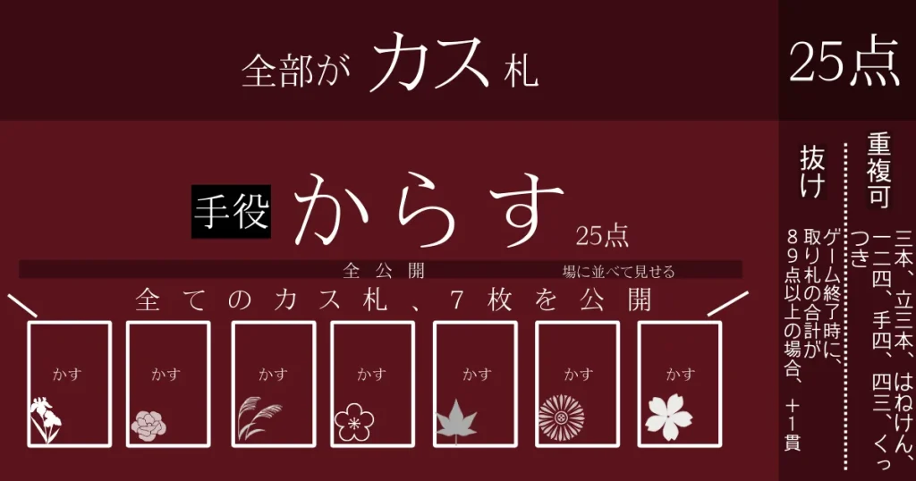 | からす(皆素、空素) | 25点 | カス7枚:全てがカス札 | ![]() |