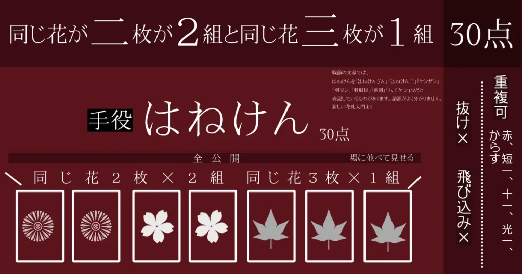 | はねけん | 30点 | 同じ花2枚×2組 同じ花3枚×1組 | ![]() |