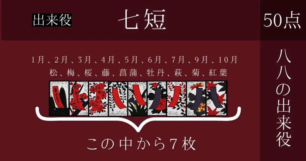| 七短 | 50点 | 柳に短冊を除く短冊札のうち、7枚を集める。 | ![]() |