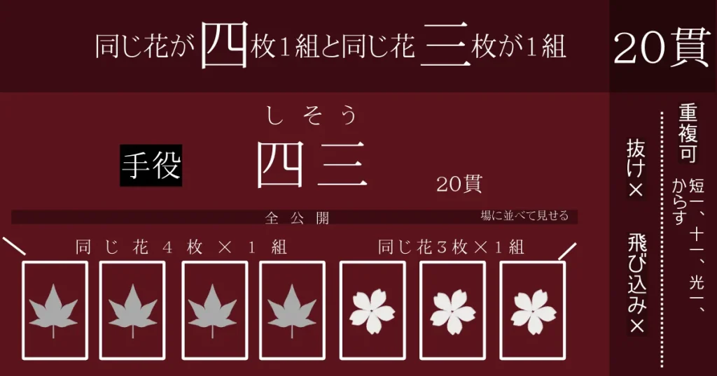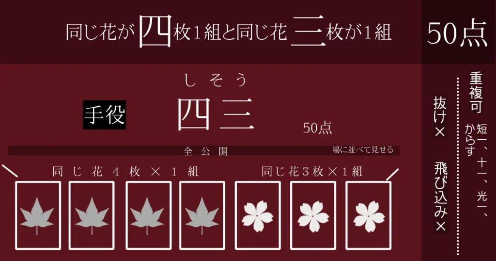 | 四三(しそう) | 50点 | 同じ花4枚×1組 同じ花3枚×1組 | ![]() |
