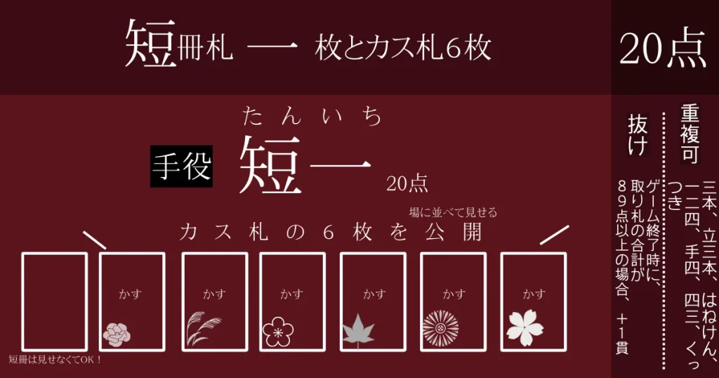 | 短一(たんいち) | 20点 | 短冊札1枚とカス札6枚 | ![]() |