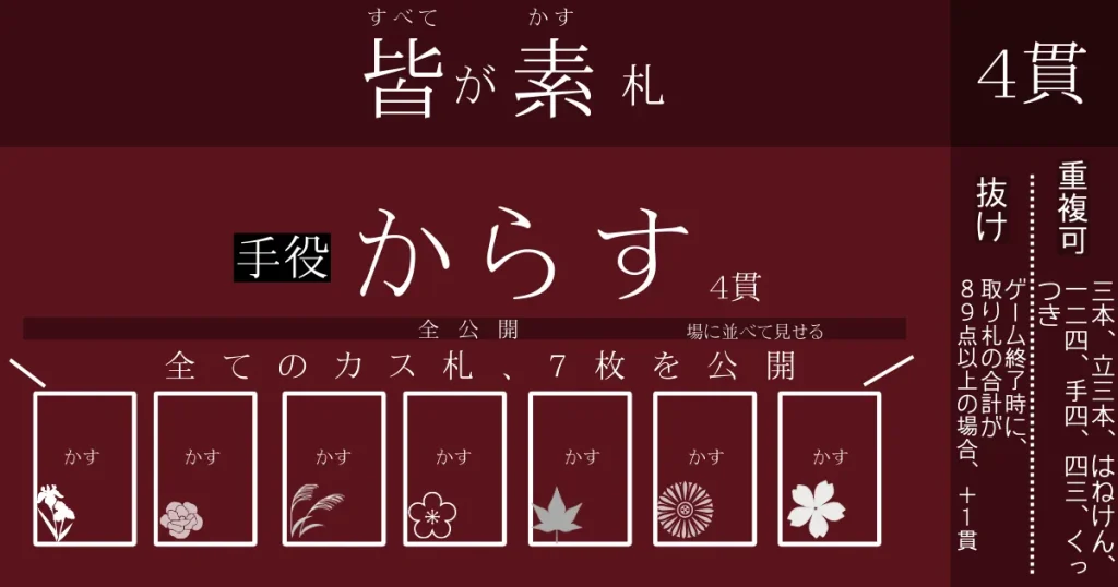 | からす(皆素、空素) | 4貫 | カス7枚:全てがカス札 | ![]() |