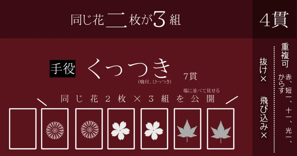 | くっつき(喰付、ひっつき) | 7貫 | 同じ花2枚×3組 | ![]() |