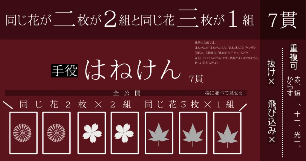 | はねけん | 7貫 | 同じ花2枚×2組 同じ花3枚×1組 | ![]() |