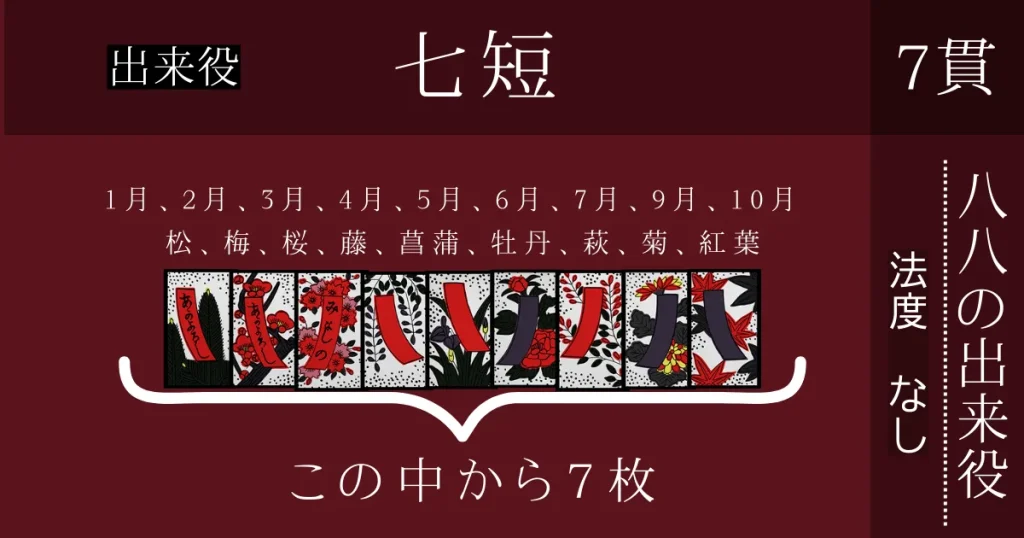 | 七短 | 7貫 | 柳に短冊を除く短冊札のうち、7枚を集める。 | ![]() |