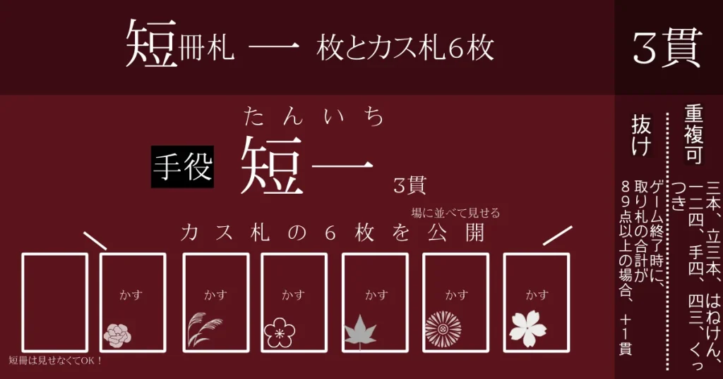 | 短一(たんいち) | 3貫 | 短冊札1枚とカス札6枚 | ![]() |