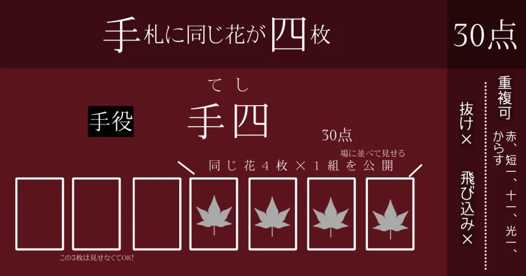 | 手四(てし) | 30点 | 同じ花4枚×1組 | ![]() |