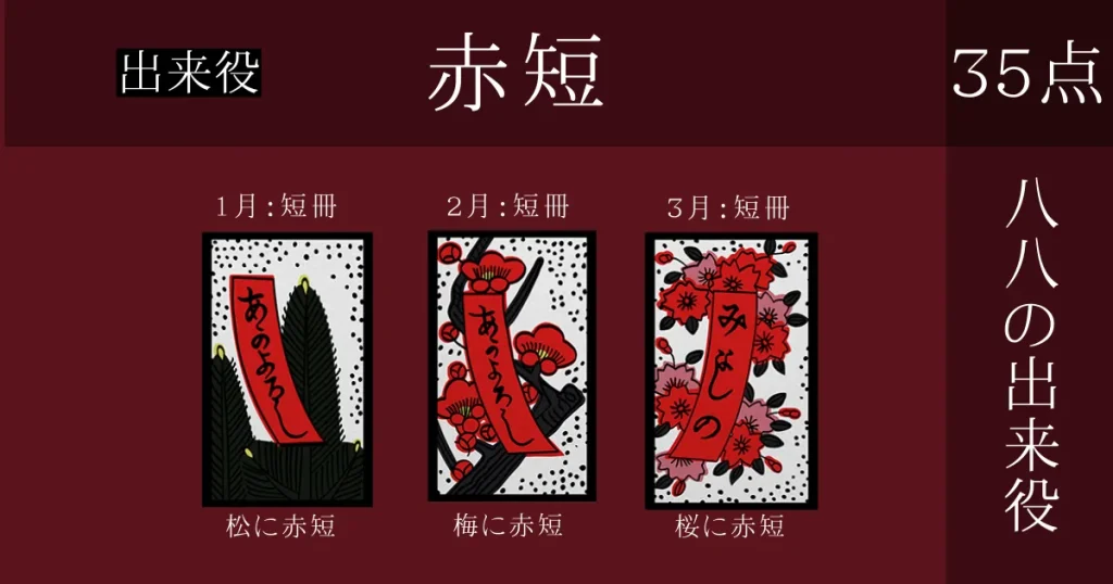 | 赤短 | 35点 | 松に赤短、梅に赤短、桜に赤短 | ![]() |