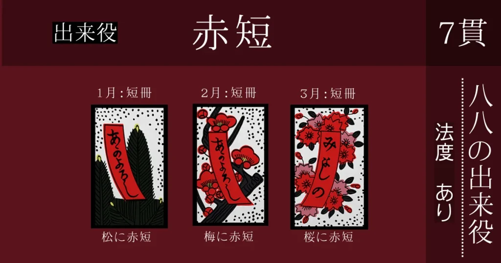| 赤短 | 7貫 | 松に赤短、梅に赤短、桜に赤短 | ![]() |