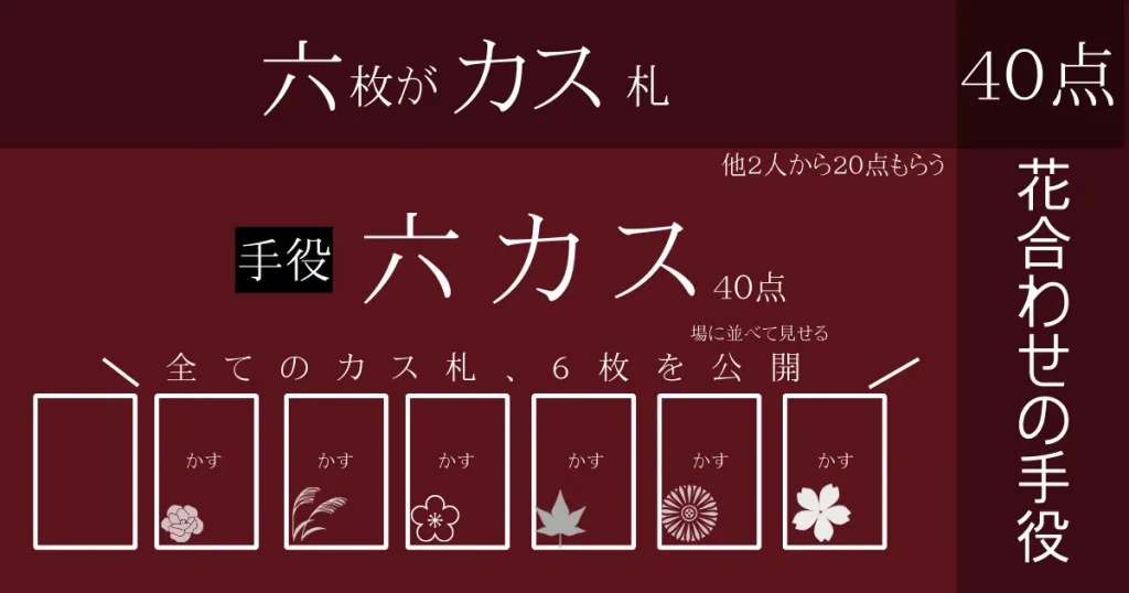 六カス:自分の手札の6枚がカスだった場合、その手札を公開すると成立。(カスではない札は除外)