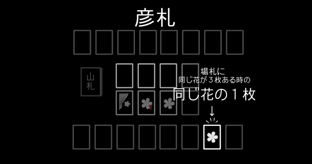多くのルールでは、彦札を出して合えば4枚まとめて取る。