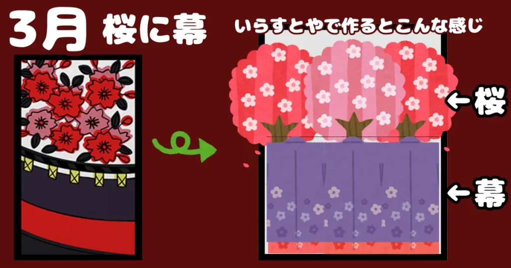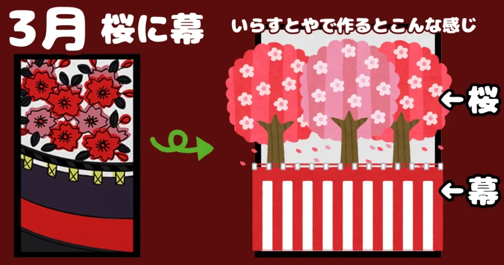 資料や解説では「桜に幔幕(さくらにまんまく)」と呼ばれることもあります。 - 幔幕(まんまく)ってなに?舞台の幕と違うの?