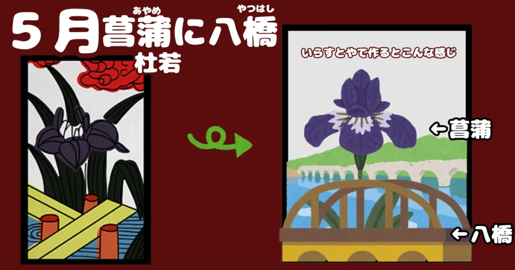 その上で5月札を見ると、沢と八橋の水景がぐっと噛み合います。