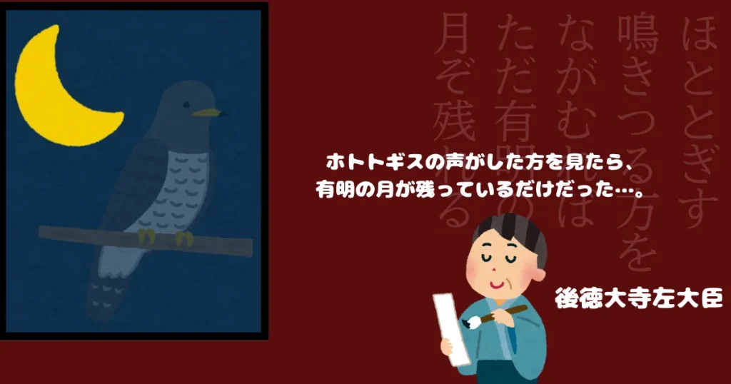 ほととぎすの声を聞いて空を見上げると、姿はなく、月だけが残る。