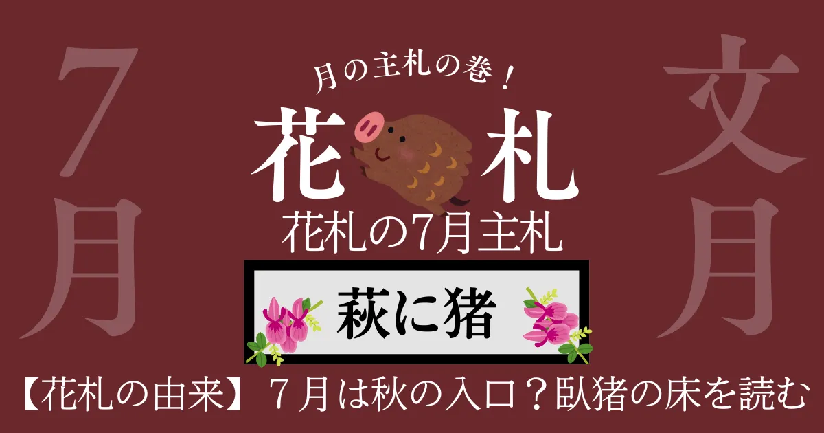 ただし花札の図柄としては、7月は「萩に猪」(萩+猪)です。 - 「萩に猪 焼酎」って何? 花札と関係ある?