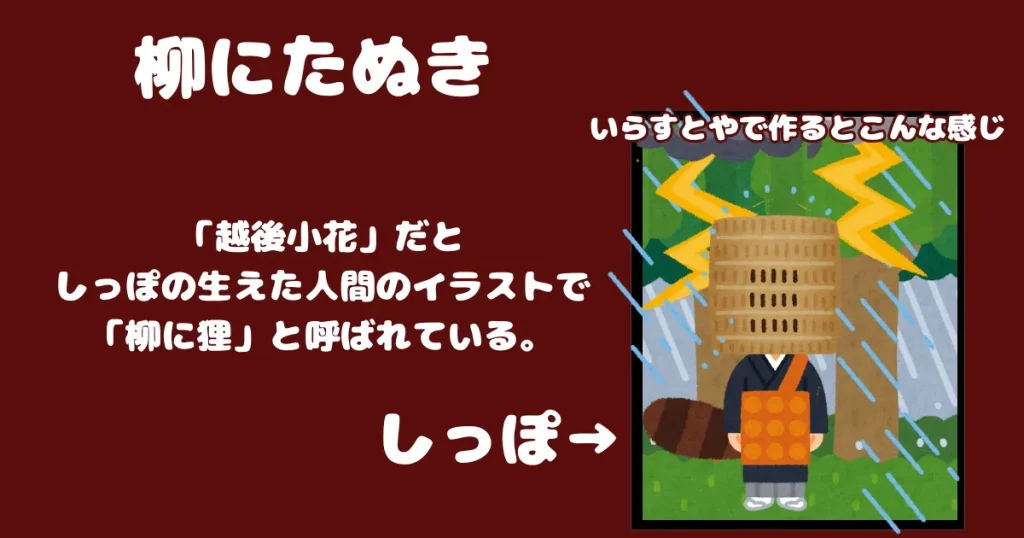 越後小花(越後の地方花札)などの系統では、柳の札が豆狸(たぬき)になることがあります。