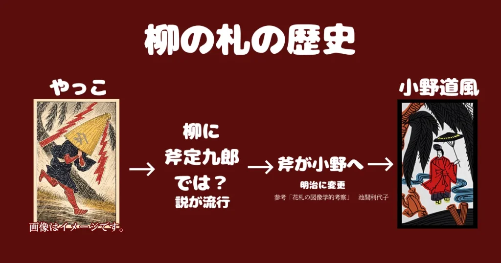 八八花札の図像が確定していく過程で、柳の光札は