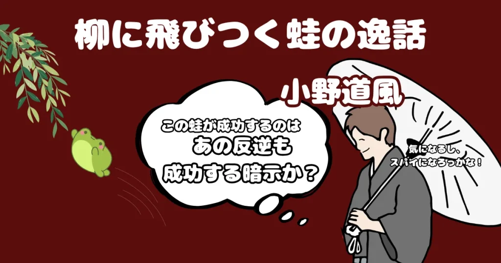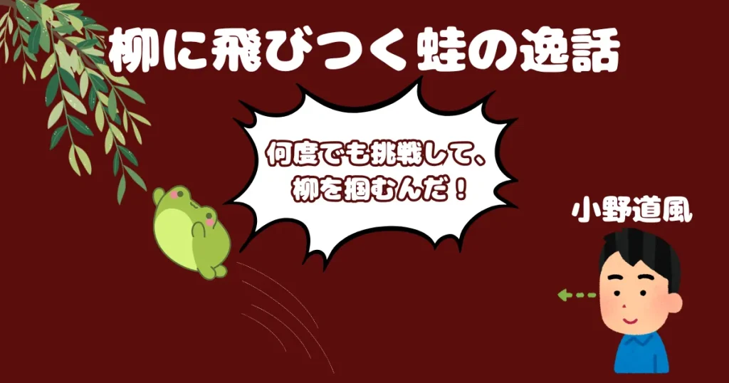 参考:小野道風 – Open GadaiWiki 柳に蛙 | 茶の湯辞典