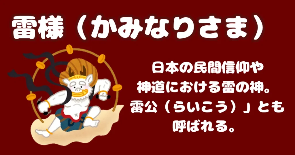 ※ここでいう「雷さま」は、雷を起こす神さま(雷の神)のことです。