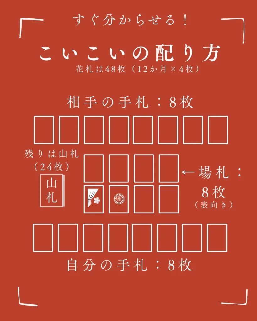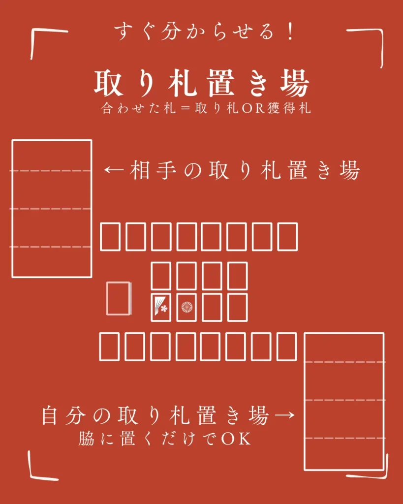 → 場に同じ月(同じ花)があれば取る/なければ場に置く