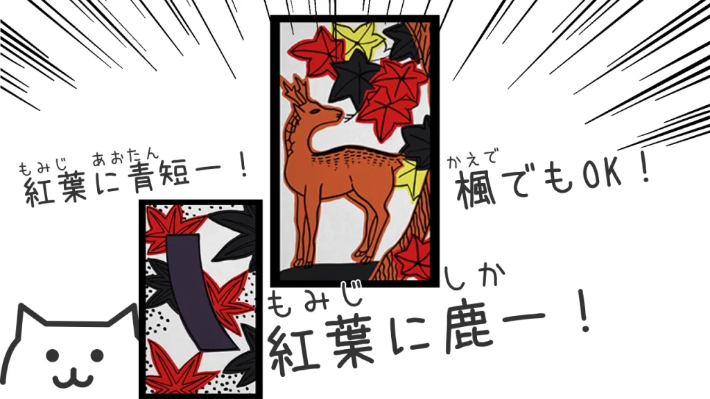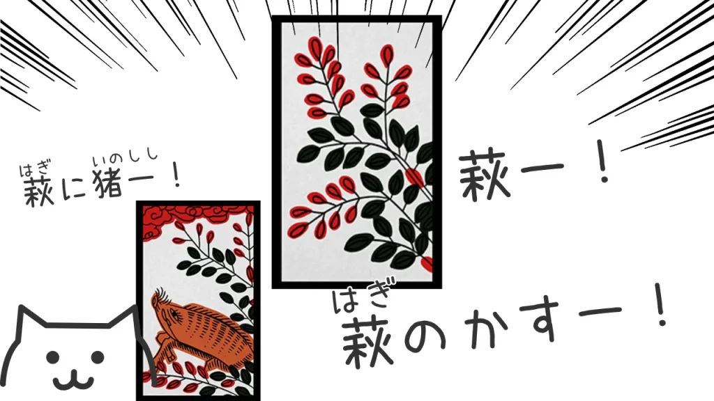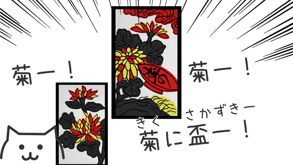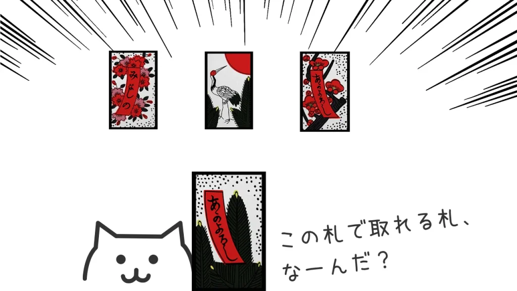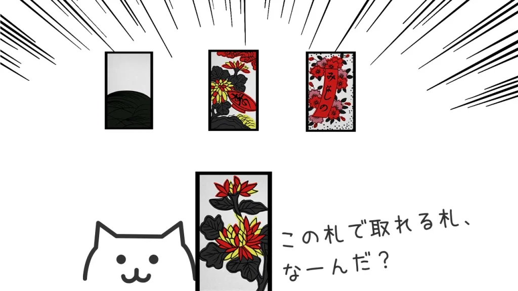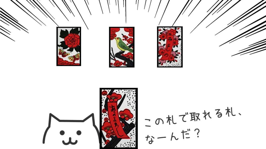 花札は「同じ月(同じ花)」を合わせると札が取れます。