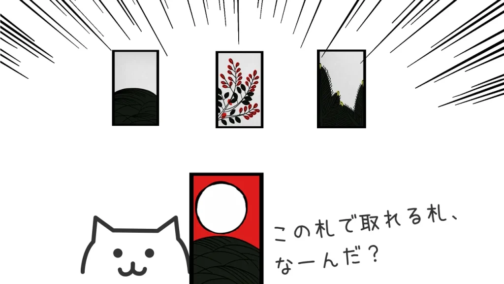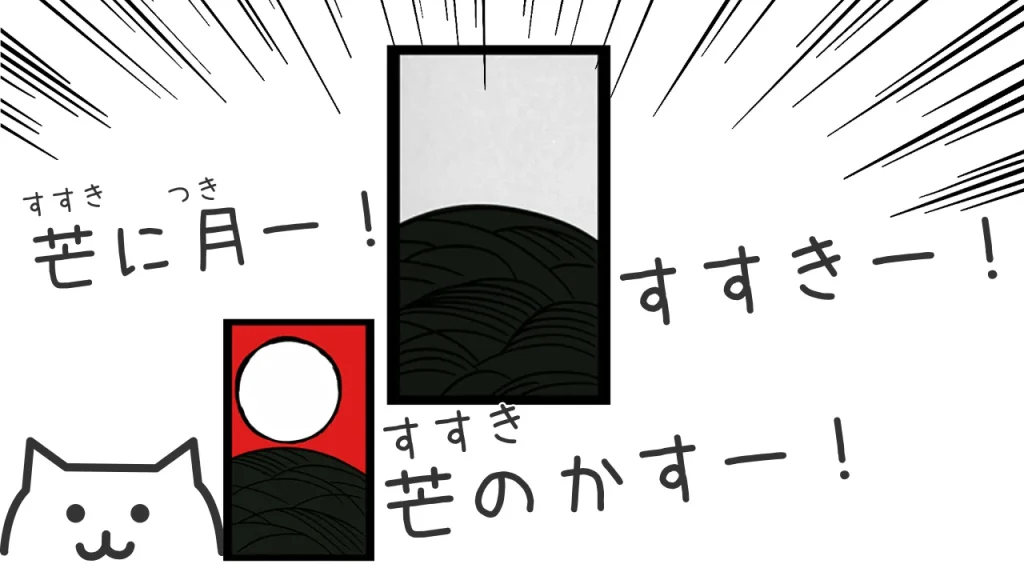 同じ!こいこいでも 同じ月を合わせて札を取る のが基本だよ。