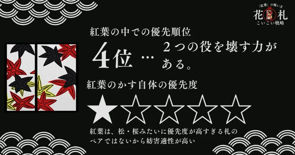 同じ紅葉札の中で主札と短冊の両方が強いので、