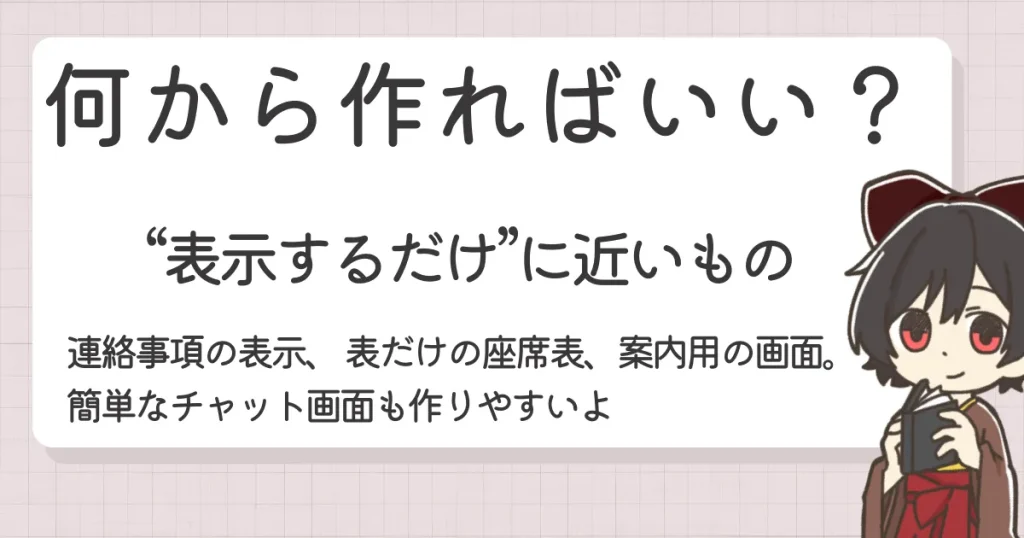 特に、表示中心の小さな画面から始めると感覚をつかみやすいです。