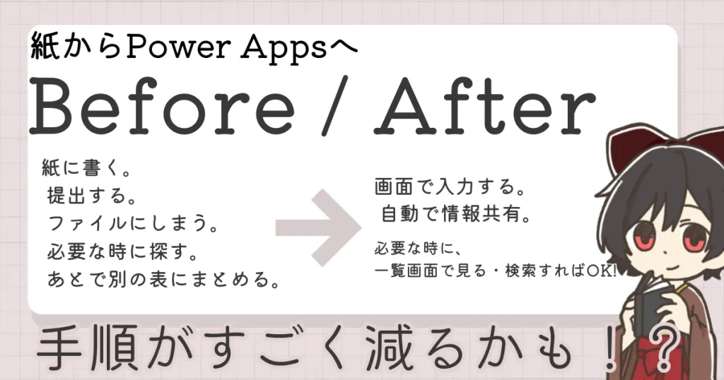 Power Apps と保存先を組み合わせると、この“書いたあとの仕事”を削りやすくなります。