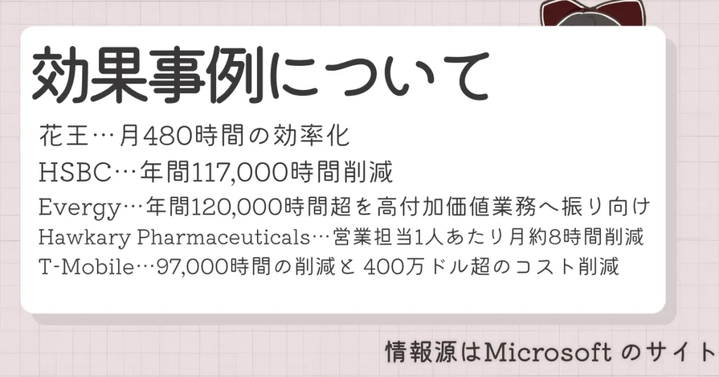 Power Apps の1つのアプリで、香港の事業で年間117,000時間削減というかなり大きな事例があります。
