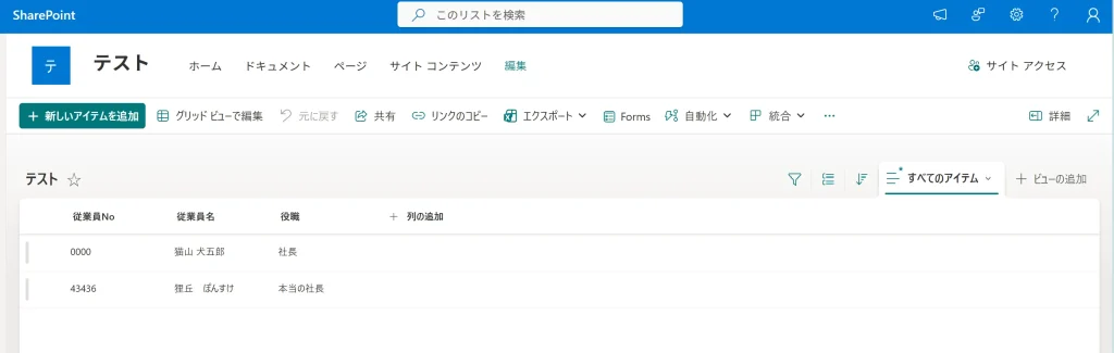 Formsの内容をSharePointに転記する