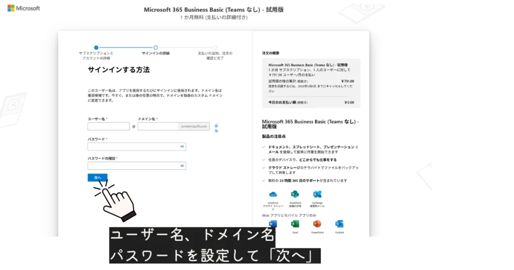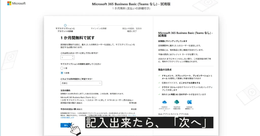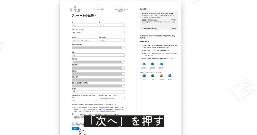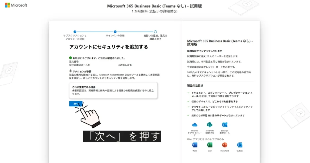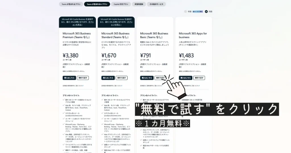 1.Microsoft 365 Business のページへ進む