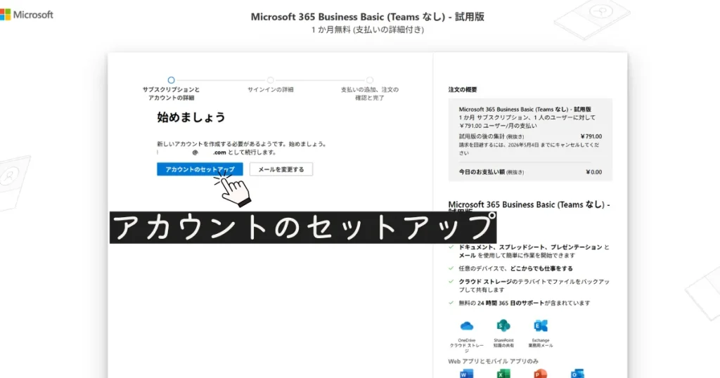 アカウントのセットアップに進みます。
