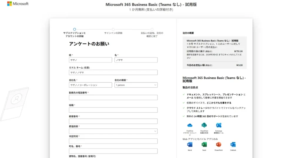 組織名を入れる場面では、あとで見て分かりやすい名前を付けておくと管理しやすいです。 - Power Apps の登録で支払い情報は必要ですか?