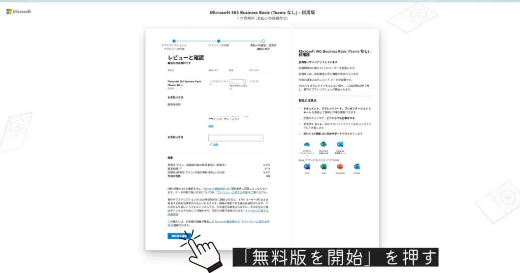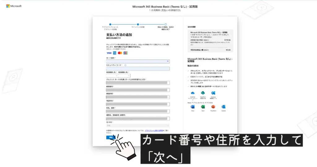 無料試用でも、確認のために支払い情報の入力が求められることがあります。