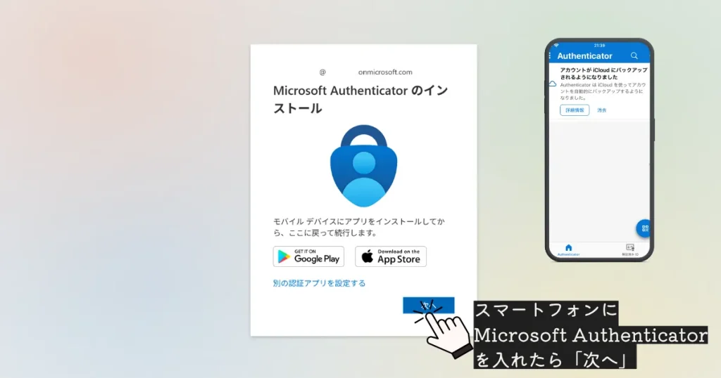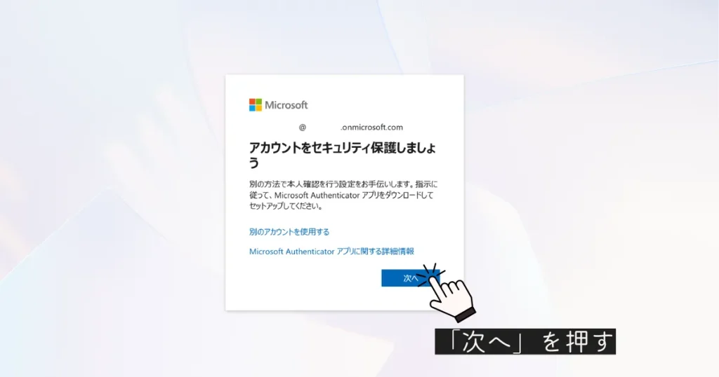 セキュリティ設定の流れで、Microsoft Authenticator の案内が出ることがあります。